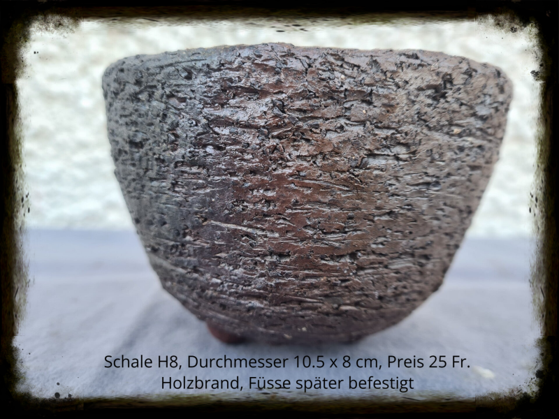 Durchmesser 13 x 9 cm, Öffnung oben 6.5 cm, Holzbrand,